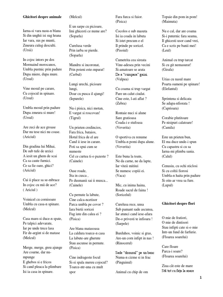 în patria ce li i dragă. Ghicitori despre flori am în curte un stejar cu vârf roşu ca de jar. Jocuri muzicale versuri cantece adunate versuri ghicitori despre fructe si legume. Primăvara ghioceii sunt pe câmpuri rândunelele în crânguri copacii înmuguresc pe cine vestesc.